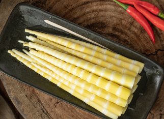 小竹筍制成菊花筍,涮火鍋、湯鍋,味尤佳。
